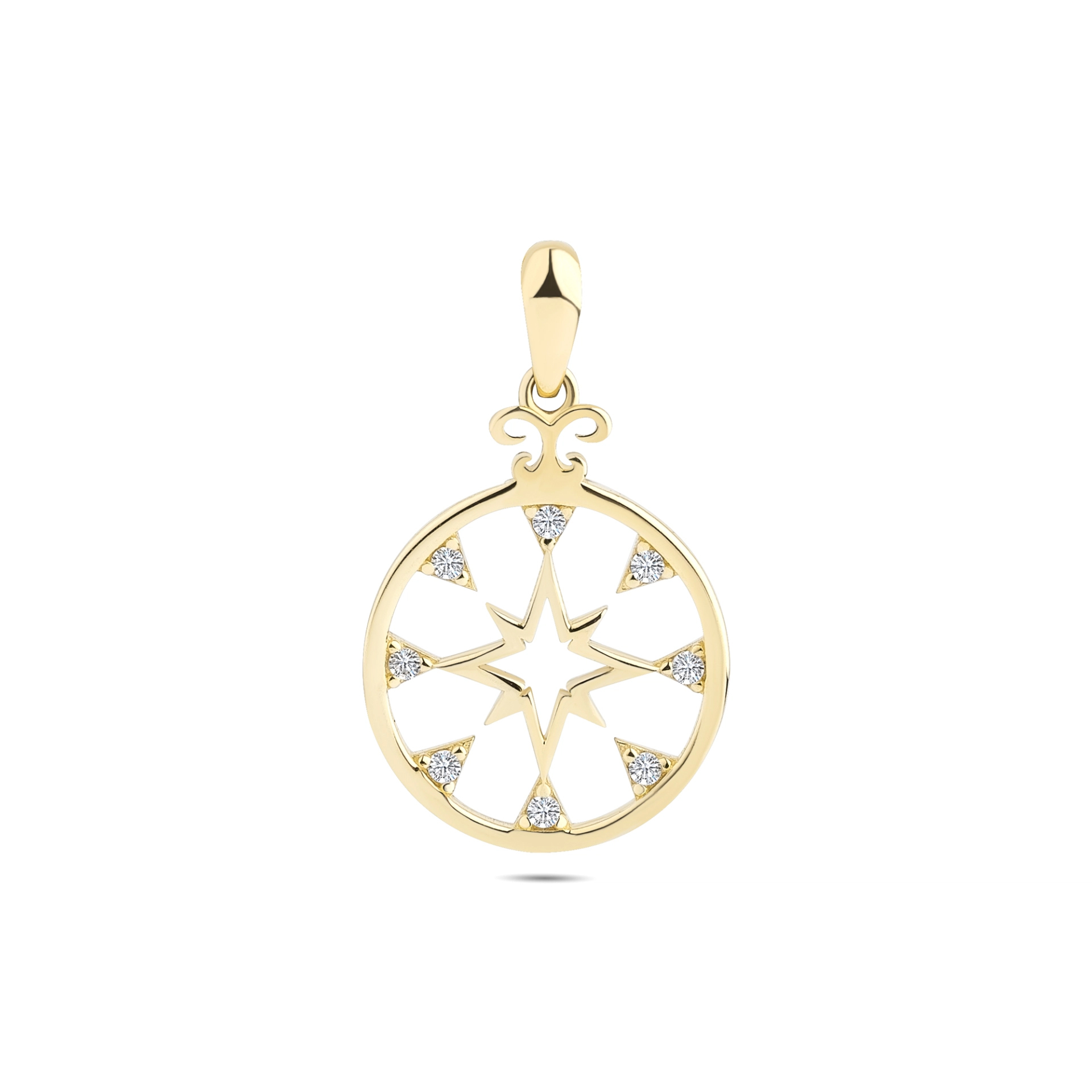 14 Ayar Taşlı Kutup Yıldızı Altın Kolye Ucu
